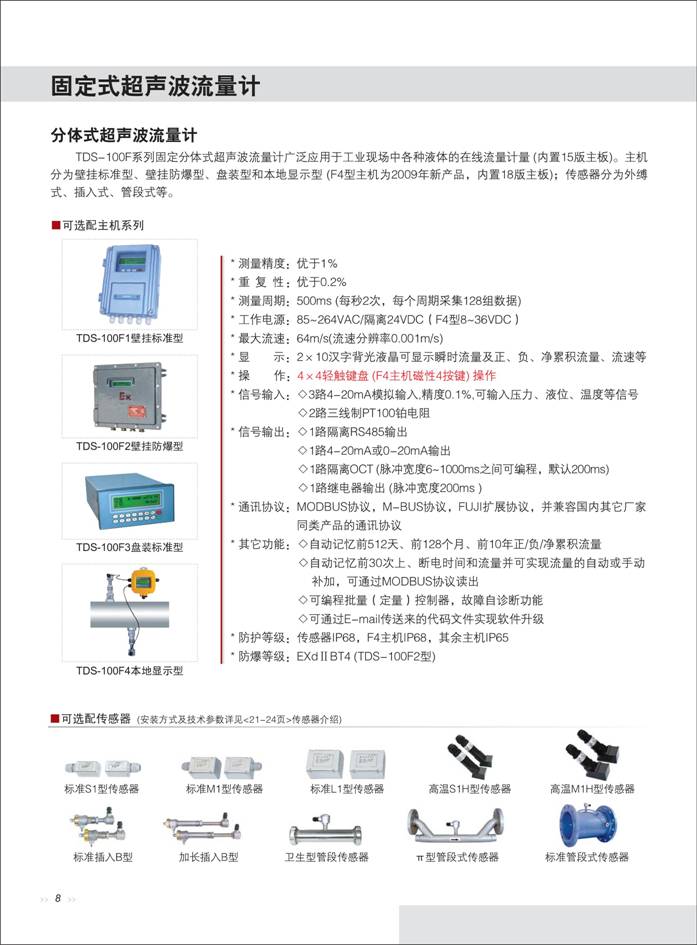 AK-TDS-100F型固定式超聲波流量計(jì)利用了低電壓、多脈沖時(shí)差原理,采用高精度和超穩(wěn)定的雙平衡信號(hào)差分發(fā)射、差分接收數(shù)字檢測(cè)技術(shù)來測(cè)量順流和逆流方向的聲波傳輸時(shí)間,根據(jù)時(shí)差計(jì)算出流速。具有穩(wěn)定性好、零點(diǎn)漂移小、測(cè)量精度高,量程比寬抗干擾性強(qiáng)等特點(diǎn)。