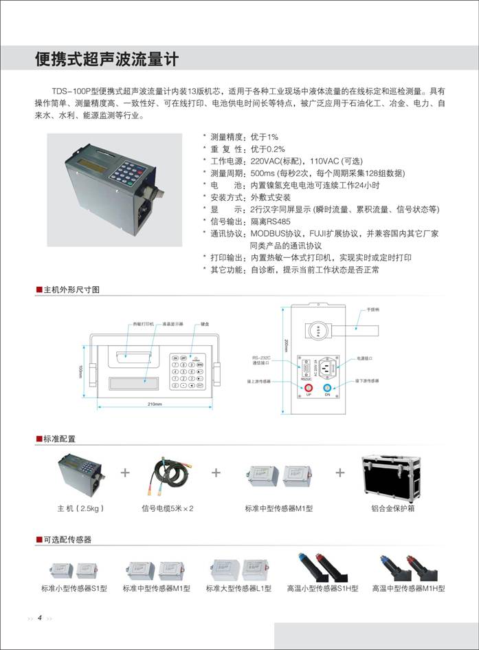 便攜式超聲波流量計(jì) 一、概 述 AK-TDS-100P型便攜式超聲波流量計(jì)利用了低電壓、多脈沖時(shí)差原理,采用高精度和超穩(wěn)定的雙平衡信號(hào)差分發(fā)射、差分接收數(shù)字檢測(cè)技術(shù)來(lái)測(cè)量順流和逆流方向的聲波