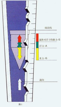 金屬轉(zhuǎn)子流量計(jì)是一種變面積式流量計(jì),它通常具有一段直立的錐管和一只可以在其中自由的隨流量大小上下移動的浮子(如圖1)。當(dāng)流體自下而上流經(jīng)錐管時,流體的動能在浮子上產(chǎn)生的推力S和流體的浮力A使浮子上升。隨著錐管內(nèi)壁與浮子之間的環(huán)形流通面積增大,流體動能在浮子上產(chǎn)生的推力S隨之下降。當(dāng)推力S與浮力之和等于浮子自身重力G時,浮子處于平衡,并穩(wěn)定在某一高度上,該高度位置對應(yīng)的刻度指示流過流量計(jì)的流量。