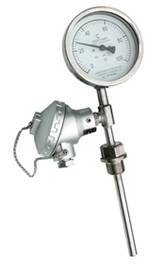 遠傳雙金屬溫度計 一、應用 AK-WSS遠傳雙金屬溫度計采用雙金屬溫度計與熱電偶/熱電阻一體的方式,既滿足現(xiàn)場測溫需求,又滿足遠距離傳輸需求,可以直接測量各種過程中的-80-+500℃范圍內(nèi)液