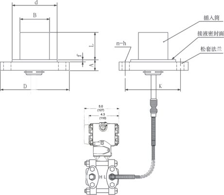 AK-3051GP單法蘭液位變送器是一種通過安裝在管道或容器上的遠(yuǎn)傳裝置來感受被測壓力,該壓力經(jīng)毛細(xì)管內(nèi)的灌充硅油(或其它的液體)傳遞至變送器的主體,然后由變送器主體內(nèi)的δ室和放大線路板,將壓力或差壓轉(zhuǎn)換4~20mA.DC信號輸出(參見結(jié)構(gòu)原理圖)。 |