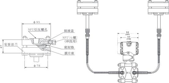 ⑤ DP型雙法蘭液位變送器兩側(cè)的毛細管zui大長度為7.5米,兩側(cè)長度差為4.5米。