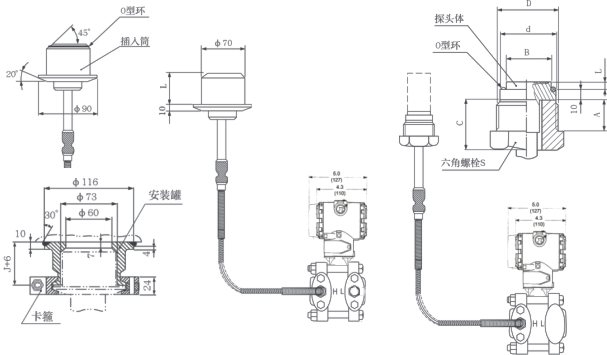 ⑤ GP型單法蘭液位變送器一側(cè)毛細管長度一般為1.5米,zui長不宜超過3米(特殊情況協(xié)議商定)。