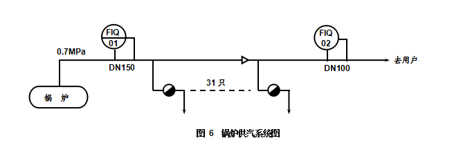 熱力公司懷疑蒸汽流量計不準,因為鍋爐房出口的流量計FIQ01穩(wěn)定顯示2.5 t/h左右的流量,而用戶端流量計FIQ02顯示時有時無,流量zui大時也只有0.75 t/h。